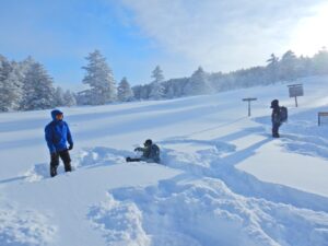 皆様思い思いのルートを進み、一人は雪に埋まり、一人を駆け下り、一人は雪まみれになって滑り落ちるなど各自楽しんでおり、笑いの絶えない時間となりました!