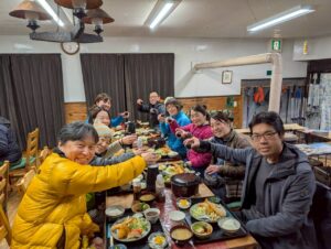 山小屋こだわりのコーヒーやお汁粉、ホットココアなどを皆さんで注文し楽しいひと時を過ごし、消灯時間ギリギリまで他愛のない話や山の話などで盛り上がりました。